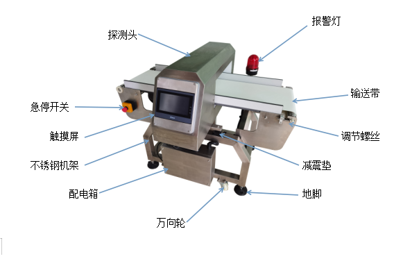 金屬探測(cè)儀是使用電磁場(chǎng)來(lái)檢查在傳送帶流水線上傳送的被檢查品,當(dāng)探測(cè)出設(shè)定值以上的金屬信號(hào)時(shí),輸出金屬混入的警報(bào)或輸出由選擇器發(fā)出的剔除指令信號(hào)的裝置。