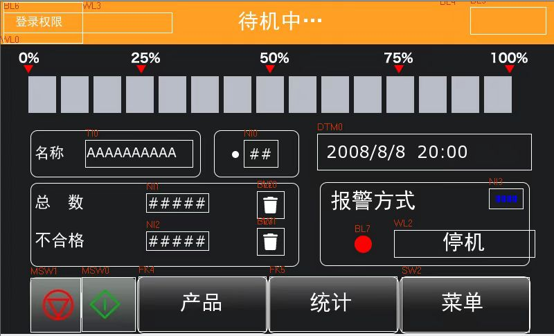 不 合 格:顯示當(dāng)前檢測(cè)產(chǎn)品的不合格數(shù)量